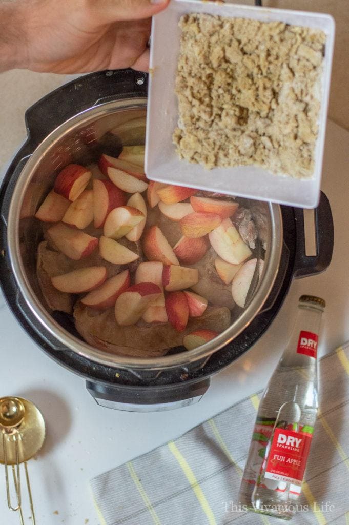 Fill your instant pot® all the above ingredients, pouring the water over the ingredients last to mix in all the cinnamon and nutmeg. Add butter, lemon juice, vanilla, brown sugar, cinnamon and salt to the instant pot and stir to combine. Instructions in a medium bowl, combine the cinnamon, pie spice, brown sugar and cornstarch until it's all mixed in completely. Add chopped apples and toss to coat. Turn the unit off and transfer the apple mixture into a bowl to cool slightly.